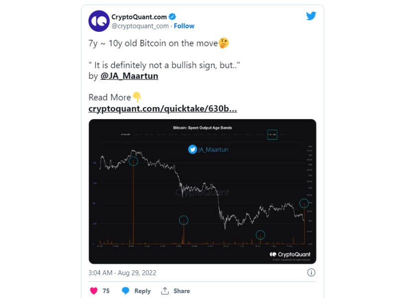 Volgens het meest recente CryptoQuant-artikel piekte het aantal oude Bitcoins dat in de marktcirculatie kwam aanzienlijk toen de eerste cryptocurrency een duik nam onder de $ 20.000 drempel.
