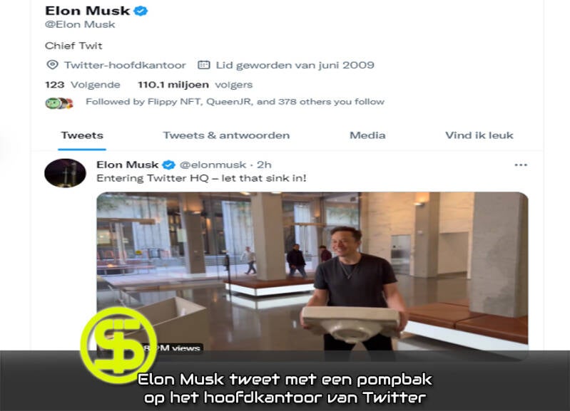 Musk twitterde: "Het hoofdkwartier van Twitter betreden laat dat bezinken!