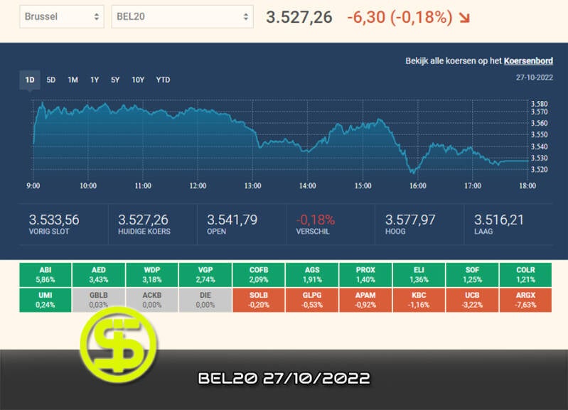 De Bel20 verloor vandaag weer een beetje met een 3527.26 -6.30 (-0.18)