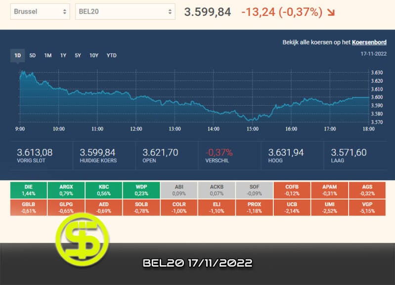 BEL20 nieuws, vandaag waren alleen DIE, ARGX, KBC, en WDP die in het groen stonden.
