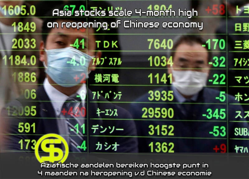 Aziatische aandelen stegen donderdag in de hoop dat China uit de pandemie zou komen, terwijl de dollar steun vond nadat analisten enkele minuten na de laatste beleidsvergadering van de Federal Reserve een waarschuwing zagen om niet te zwaar in te zetten op renteverlagingen dit jaar.