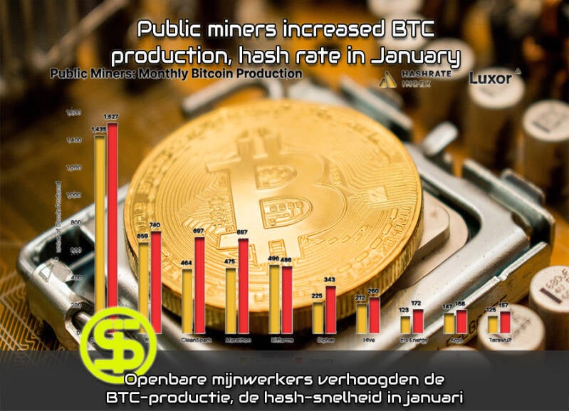De meerderheid van de openbare mijnwerkers verhoogde hun bitcoin-productie in januari, waarbij CleanSpark deze met 50% verhoogde en een recordmaandproductie van 697 Bitcoins bereikte.