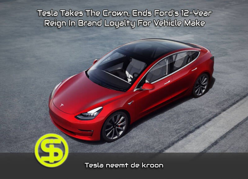 Tesla plukt rijke oogst: Telsa, leider op het gebied van elektrische voertuigen, werd uitgeroepen tot winnaar van de prijs "Overall Loyalty To Make", waarmee Ford Motor Company werd uitgeschakeld F in deze categorie, toonde S&P Mobility release.
