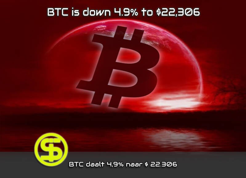 Bitcoin BTCUSD daalde met 4,9% naar $ 22.306, na het bereiken van een dieptepunt in 2 1/2 week op $ 22.000. Ether
