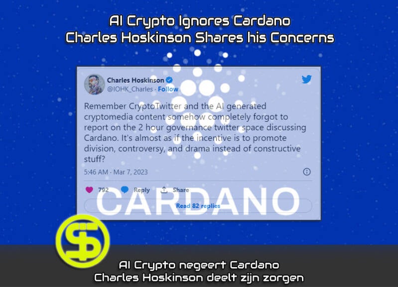 * Charles Hoskinson tweette dat de CryptoTwitter en de AI-cryptomedia niet op Cardano Twitter hebben gerapporteerd.