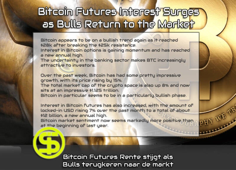 De belangstelling voor Bitcoin-futures is ook toegenomen, waarbij het bedrag aan vergrendelde USD de afgelopen maand met 7% is gestegen tot een totaal van ongeveer $ 12 miljard een nieuw jaarlijks hoogtepunt.
