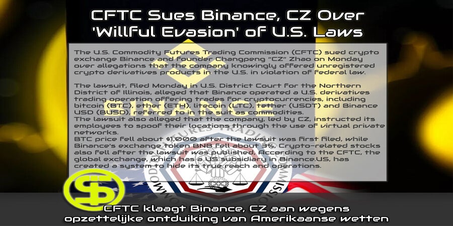 De Amerikaanse Commodity Futures Trading Commission (CFTC) klaagde crypto-uitwisseling Binance en oprichter Changpeng "CZ" Zhao maandag aan op beschuldigingen dat het bedrijf willens en wetens niet-geregistreerde crypto-derivatenproducten in de VS aanbood tegen de federale wetgeving in.