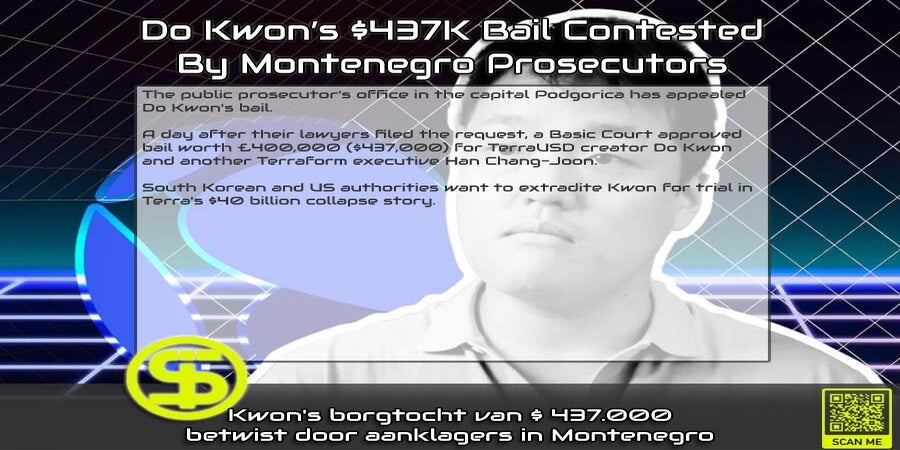 Het openbaar ministerie in de hoofdstad Podgorica heeft beroep aangetekend tegen de borgtocht van Do Kwon.