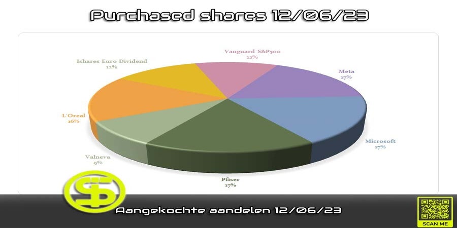 Aangekochte aandelen 12/06/23, voornamelijk Valneva, L'Oreal, Ishares Euro Dividend, Vanguard S&P500, Meta, Microsoft, Pfiser