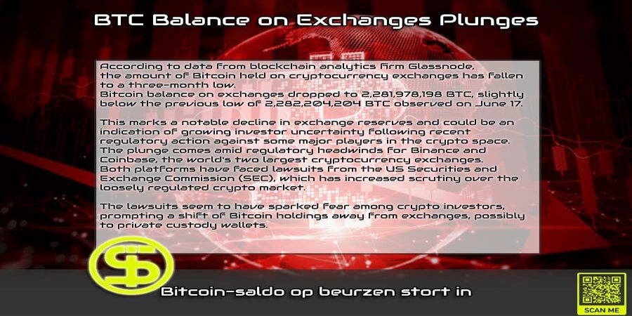 Het Bitcoin-saldo op beurzen zakte naar 2.281.978,198 BTC, iets onder het vorige dieptepunt van 2.282.204,204 BTC dat werd waargenomen op 17 juni.