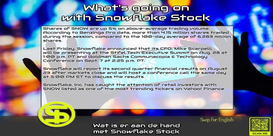De aandelen van SNOW zijn 5% gestegen ten opzichte van het bovengemiddelde handelsvolume.
