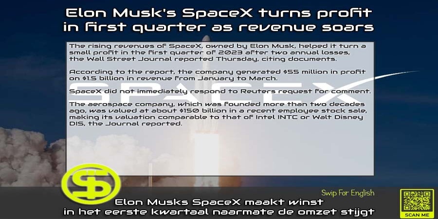 De stijgende inkomsten van SpaceX, eigendom van Elon Musk, hielpen het om in het eerste kwartaal van 2023 een kleine winst te maken na twee jaarlijkse verliezen, meldde de Wall Street Journal donderdag, daarbij verwijzend naar documenten.