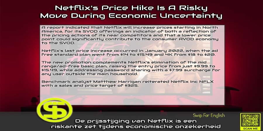 Een rapport gaf aan dat Netflix de prijzen zal verhogen, beginnend in Noord-Amerika, voor zijn SVOD-aanbod een indicator van zowel een weerspiegeling van de prijsacties van zijn nabije concurrenten als dat een lagere prijs voor de consumenten-AVOD-economie aanzienlijk kan bijdragen aan de SVOD.