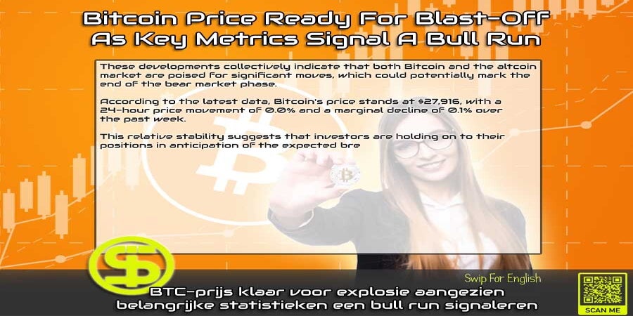 Volgens de laatste gegevens bedraagt de prijs van Bitcoin $27.916, met een prijsbeweging over 24 uur van 0,0% en een marginale daling van 0,1% in de afgelopen week.