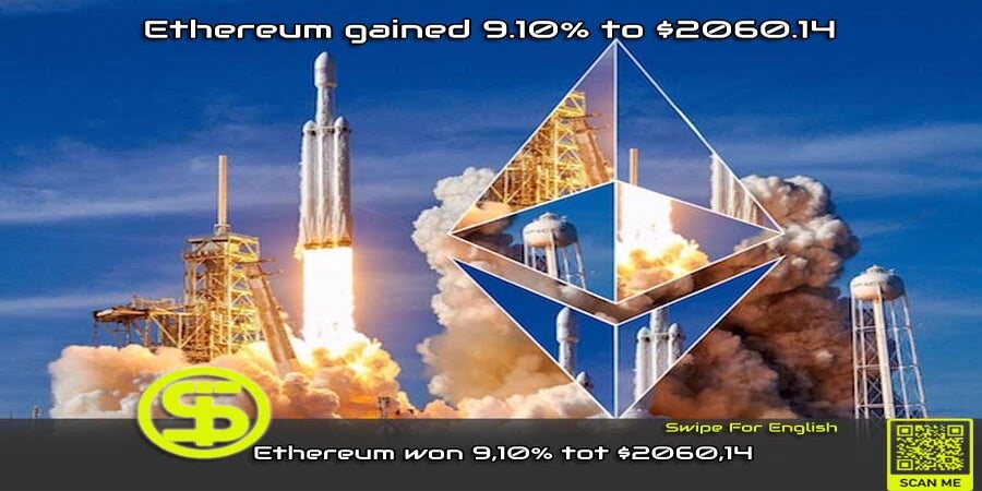 Ethereum is gisteren $171,89 gestegen of 9,10% naar $2060,14