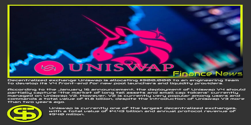 Gedecentraliseerde beurs Uniswap wijst $300.000 toe aan een technisch team om zijn V4-front-end te ontwikkelen voor nieuwe pool-launchers en liquiditeitsverschaffers.