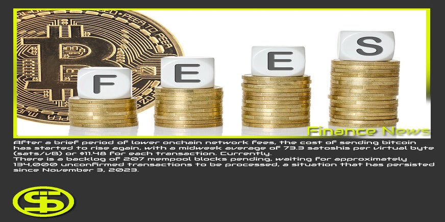 Na een korte periode van lagere onchain-netwerkkosten zijn de kosten voor het verzenden van bitcoin weer gaan stijgen, met een midweekgemiddelde van 73,3 satoshis per virtuele byte (sats/vB) of $11,48 voor elke transactie. Momenteel is er een achterstand van 207 mempool-blokken in behandeling, wachtend op de verwerking van ongeveer 134.000 onbevestigde transacties, een situatie die sinds 3 november 2023 voortduurt.