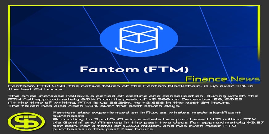 Fantoom FTM USD, het native token van de Fantom-blockchain, is de afgelopen 24 uur met meer dan 31% gestegen.
