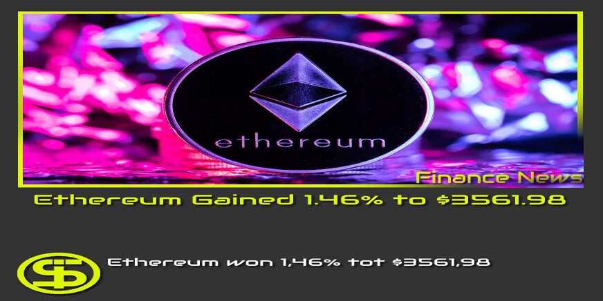 Ethereum is vandaag $51,40 gestegen, of 1,46% naar $3561,98