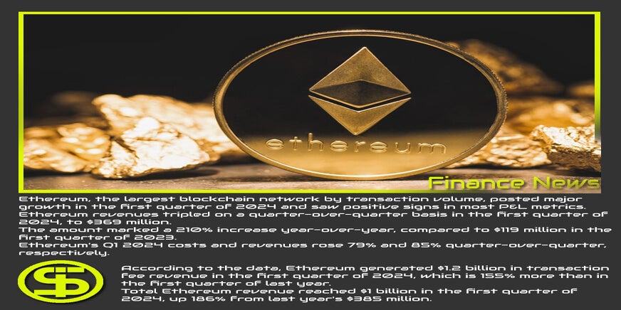 De Ethereum inkomsten zijn in het eerste kwartaal van 2024 op kwartaal-op-kwartaal basis verdrievoudigde, tot $369 miljoen.