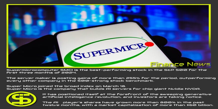 Supermicrocomputer SMCI is het best presterende aandeel in de S&P 500 voor de eerste drie maanden van 2024.