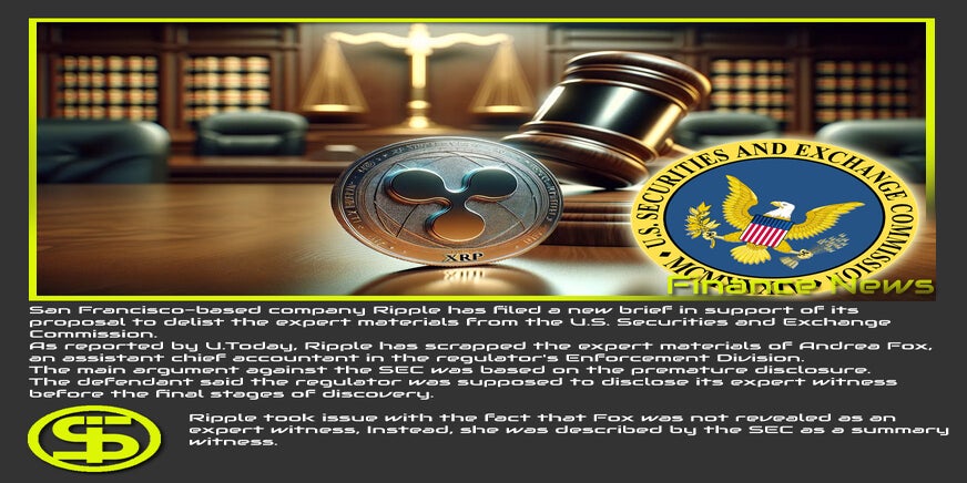 Het in San Francisco gevestigde bedrijf Ripple heeft een nieuwe brief ingediend ter ondersteuning van zijn voorstel om de deskundige materialen van de Amerikaanse Securities and Exchange Commission te schrappen.