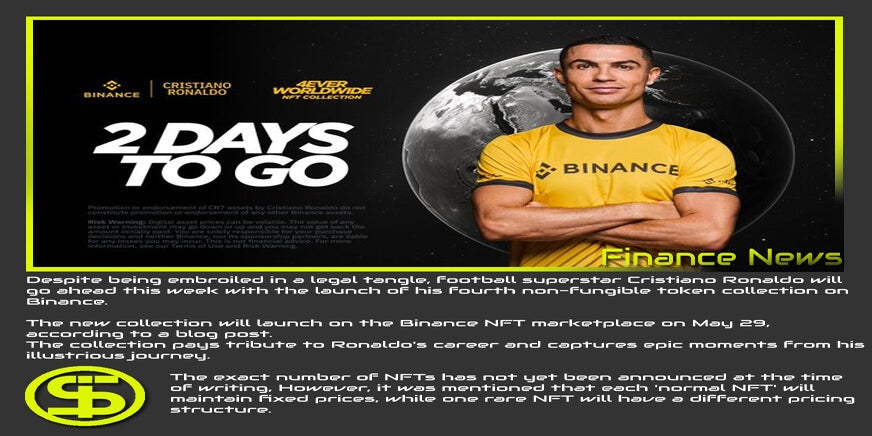 Ondanks dat hij verwikkeld is in een juridisch kluwen, zal voetbalsuperster Cristiano Ronaldo deze week doorgaan met de lancering van zijn vierde niet-fungibele tokencollectie op Binance .
