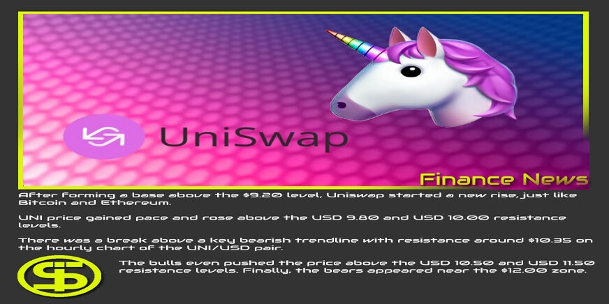 Na het vormen van een basis boven het $9,20-niveau, begon Uniswap een nieuwe stijging, net als Bitcoin en Ethereum.