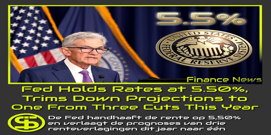 De Amerikaanse Federal Reserve handhaafde het rentetarief op 5,50%, maar voorzag slechts één renteverlaging voor dit jaar, vergeleken met een eerdere projectie van drie.