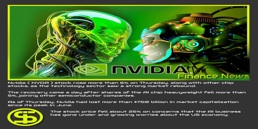 Het aandeel Nvidia ( NVDA ) steeg donderdag met ruim 6%, net als andere chipaandelen, omdat de technologiesector een sterke opleving van de markt doormaakte .