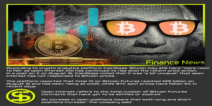 Het platform meldde dat de totale OI op Bitcoin-futures op 16 augustus de $ 29 miljard bereikte en de hele week is gestegen, terwijl de spotprijzen van BTC de afgelopen dagen met 5% zijn gedaald.