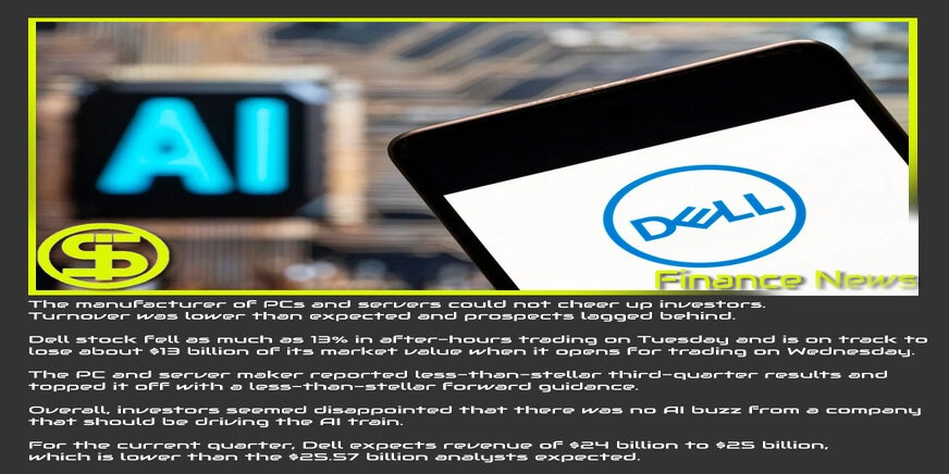 Voor het huidige kwartaal verwacht Dell een omzet van $ 24 miljard tot $ 25 miljard, wat lager is dan de $ 25,57 miljard die analisten verwachtten.