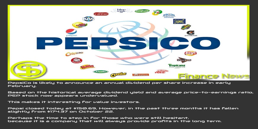 Pepsi sloot vandaag op $ 150,69, In de afgelopen drie maanden is het echter iets gedaald ten opzichte van $ 174,37 op 22 oktober.