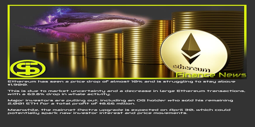 Ethereum kende een prijsdaling van bijna 10% en heeft moeite om boven $1.900 te blijven.