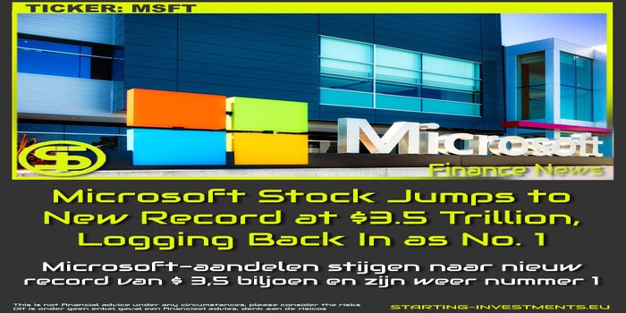 Microsoft bereikte donderdag een nieuw record, waardoor de marktkapitalisatie steeg tot net onder de 3,5 biljoen dollar en het bedrijf opnieuw de titel van grootste beursgenoteerde onderneming ter wereld kreeg.