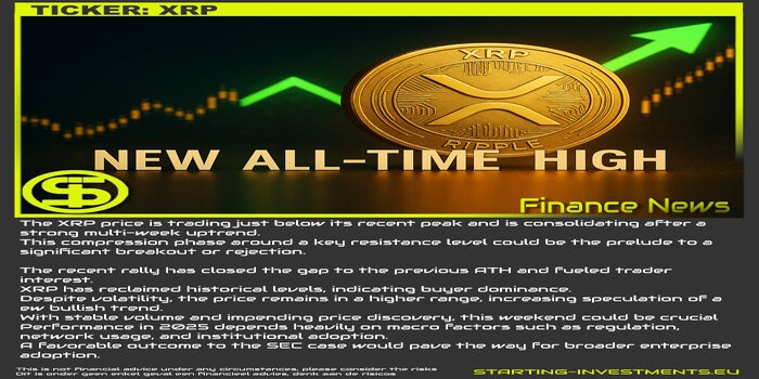 XRP bevindt zich momenteel net onder zijn recente recordhoogte, na een sterke, meer weken durende bullish trend.