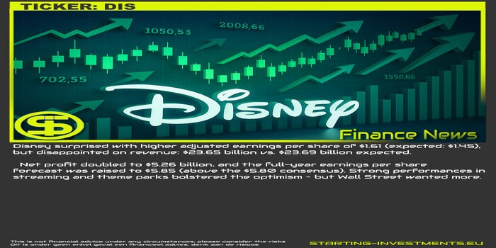 Disney verraste met een hogere aangepaste winst van $1,61 per aandeel (verwacht: $1,45), maar stelde teleur op omzet: $23,65 miljard vs. $23,69 miljard verwacht.