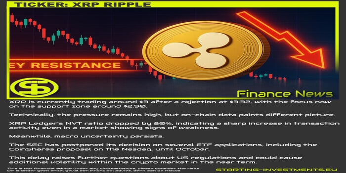 XRP handelt momenteel rond de $3 na een afwijzing op $3,32, waarbij de focus nu ligt op de steunzone rond $2,90.