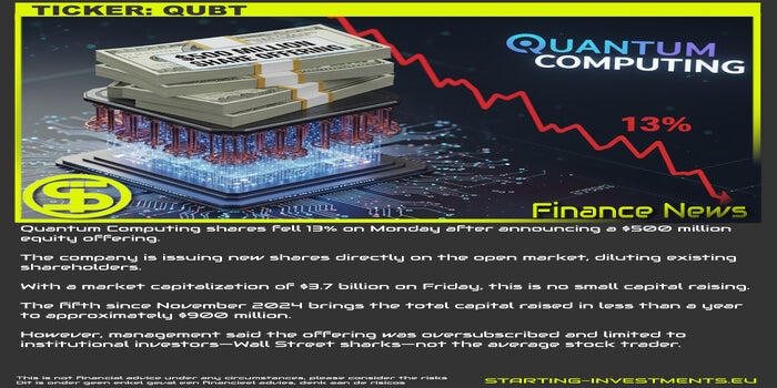Quantum Computing aandelen daalde maandag met 13% na de aankondiging van een aandelenemissie ter waarde van $500 miljoen.