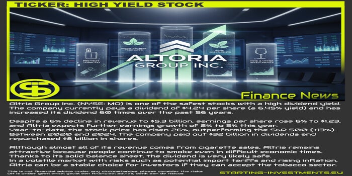Altria Group Inc. (NYSE: MO) is een van de veiligste aandelen met een hoog dividendrendement.