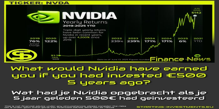 Wat had je Nvidia opgebracht als je 5 jaar geleden 500€ had geinvesteerd, wel met deze kleine investering zou je mooie winst hebben geboekt.