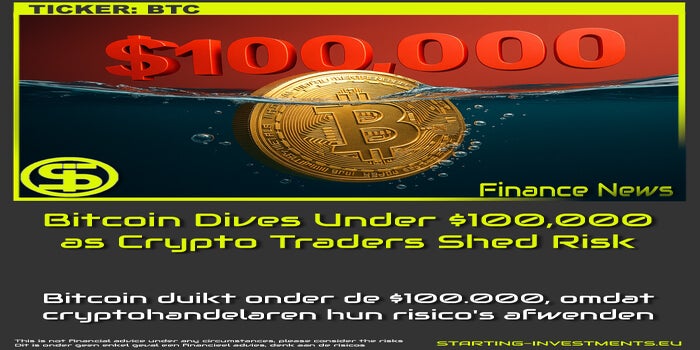 Bitcoin (BTC) zakte dinsdag 5% tot $100.800, met een korte duik onder de psychologische grens van $100.000.