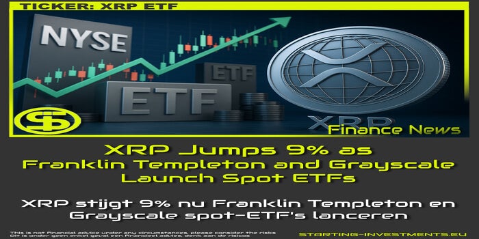 XRP steeg met meer dan 9% naar $2,27 na de lancering van spot-XRP-ETF's door Franklin Templeton en Grayscale, die zich voegden bij eerdere initiatieven van Bitwise en Canary Capital.