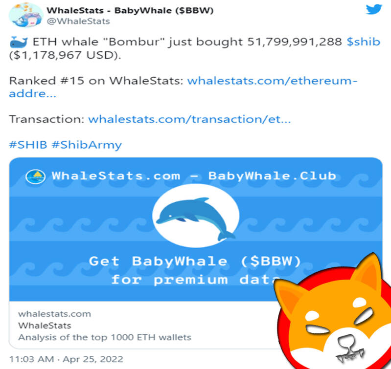 Ondertussen heeft een van de grote ETH-walvissen nog eens 52 miljard SHIB aan zijn portemonnee toegevoegd.