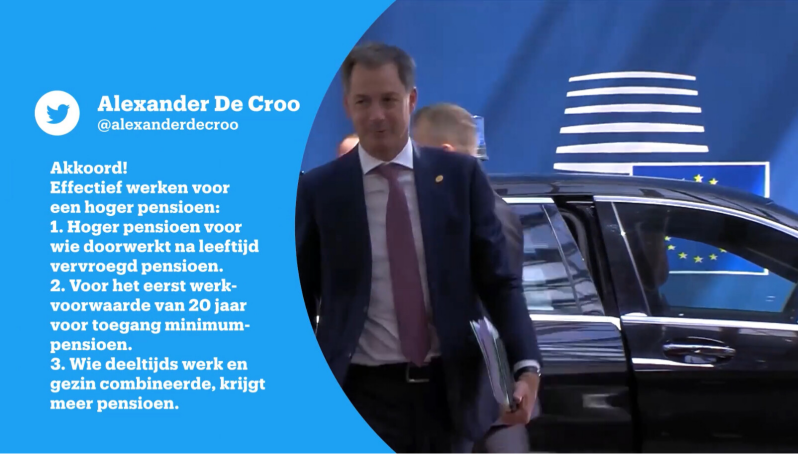 Volgens het kabinet van premier De Croo zorgt het akkoord ervoor dat wie langer werkt en effectief aan de slag is, meer pensioen krijgt.